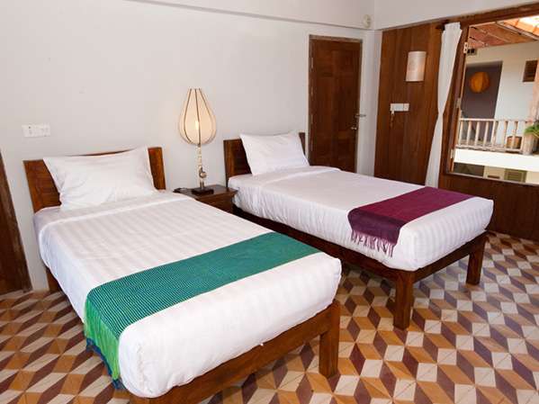 Located on the first floor of the main building, the four Suite Rooms, including private bathrooms feature antique Khmer king-size beds and large balconies furnished with tables, chairs, and removable hammocks. These rooms offer a spacious and serene environment, ideal for guests seeking a tranquil retreat.