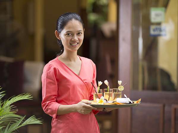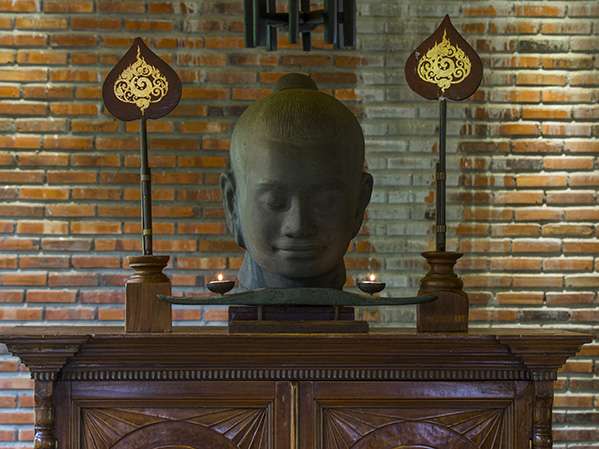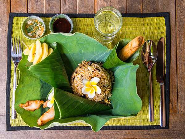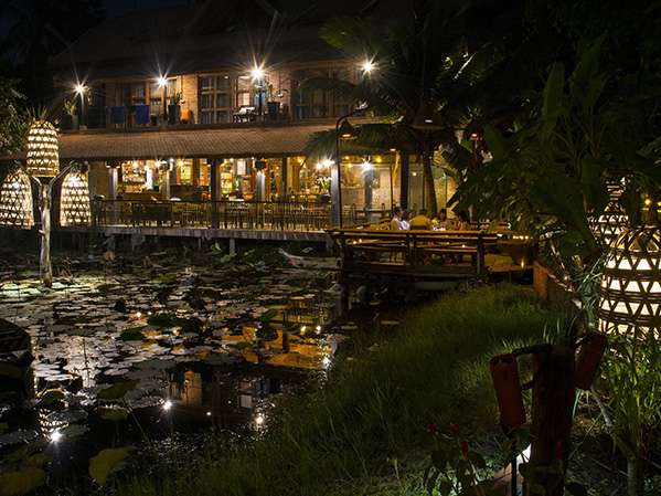 The on-site Restaurant-Bar “La Terrasse de Lotus” offers Khmer family-recipe dishes using organic produce from its garden and nearby markets, served in air-conditioned or open-air areas overlooking the lotus pond.