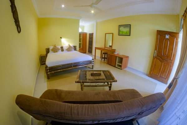 There is a mix of room and suite sizes and you can choose to have a view of the lake, mountains or the gardens, there are veranda’s on most of the rooms giving you an outdoor place to sit and relax. The rooms are spacious and clean with bamboo furniture.