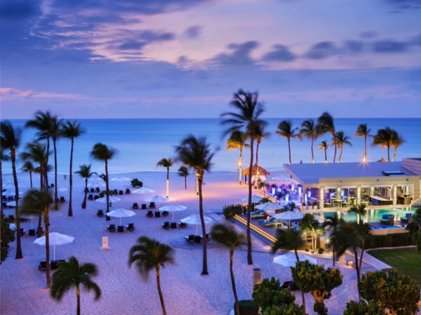 Eagle Beach: The resort is situated on one of the Caribbean’s most pristine beaches, offering comfortable sunbeds and shade for every guest.