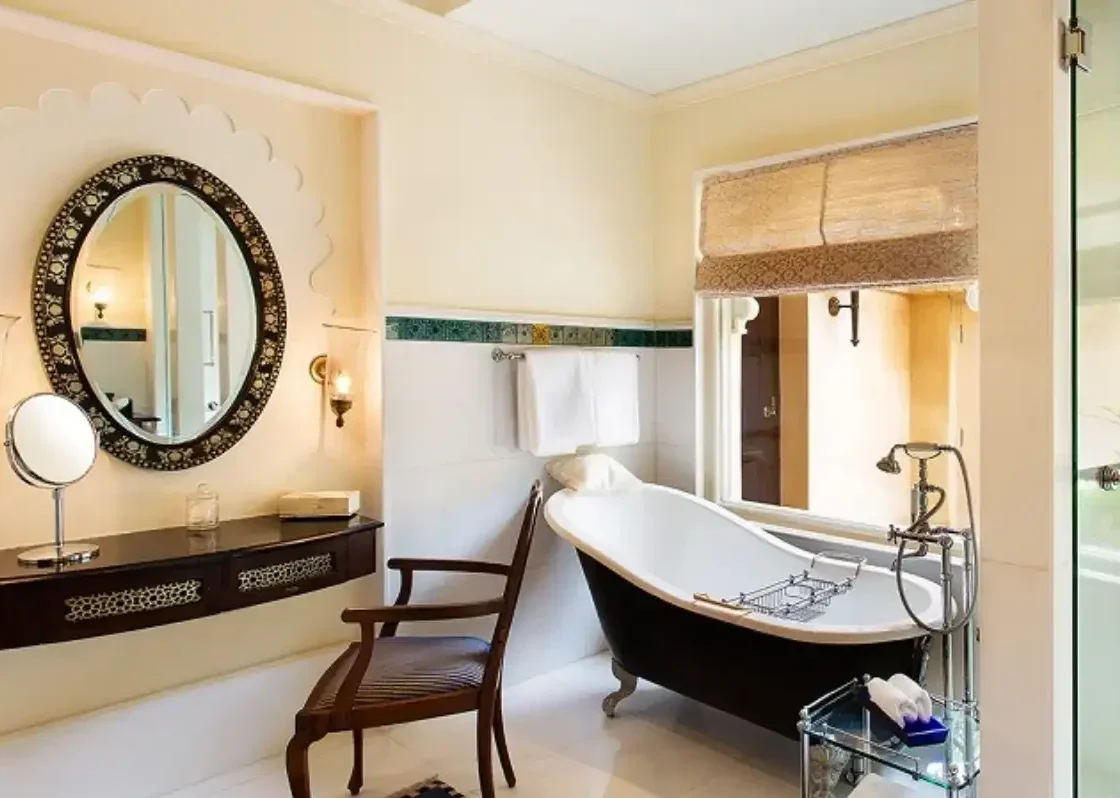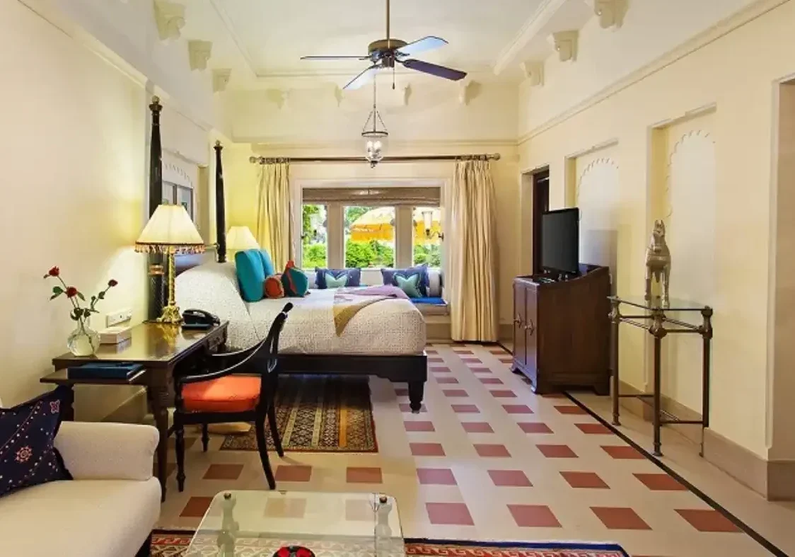 Featuring splendid furniture, Mewar inspired designs and the most modern technologies, including complimentary access to high speed Internet for up to four devices, rooms harmonise authentic style and convenience. On one side, rooms afford refreshing views of the expansive gardens, indigenous trees and vibrant bougainvillea. On the other, they open onto private or semi-private pools, with views of the serene waters of Lake Pichola and the dramatic City Palace. Guests can opt for a suite and enjoy the luxury of their own private pool, or choose a premier room with a semi private pool and enjoy a unique bathing experience amongst resorts in Udaipur, in a 73 metre long water body. Guests who book a stay in a premier room can relax beside garden or pool views, in tastefully appointed accommodation replete with Rajasthani touches.