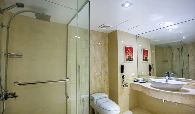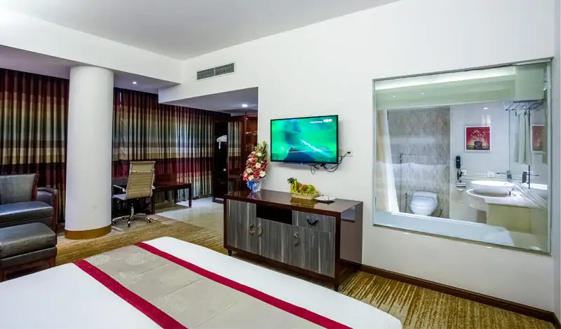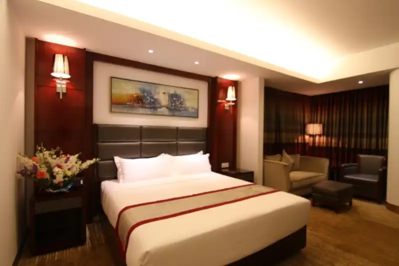 The Bengal Blueberry Hotel is a comfortable 56 room hotel located in Gulshan district of Dhaka, just 6 km from the international airport. Facilities include a restaurant serving international cuisine, coffee shop and rooftop terrace bar. All 56 rooms feature flat-screen TVs with cable channels, and you can enjoy free WiFi, sofa beds, and coffee/tea makers. Refrigerators and round-the-clock room service make in-room dining easy, and minibars provide refreshments. You’ll find nice touches like jetted tubs and free toiletries to enhance your stay. Free newspapers, free bottled water, and safes are also available. Other facilities include a full-service spa and a 24-hour health club. The Bengal Blueberry Hotel in Gulshan, Dhaka.