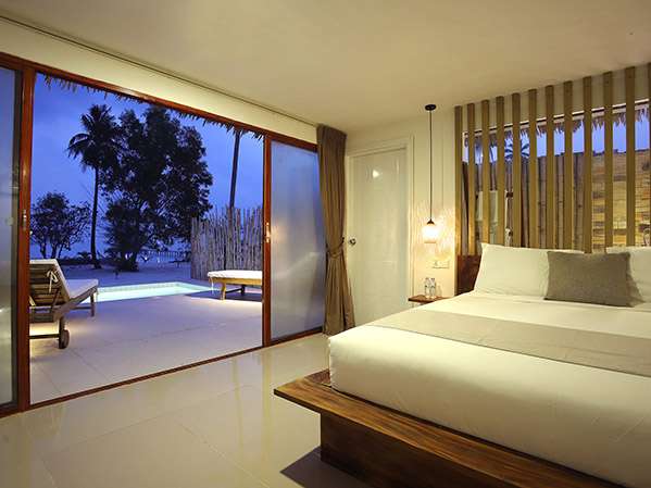 Offering minimalistic luxury with a modern aesthetic and open-style bathrooms nestled among coconut trees for added privacy. Each air-conditioned space features premium bedding, a king-sized bed and modern amenities.