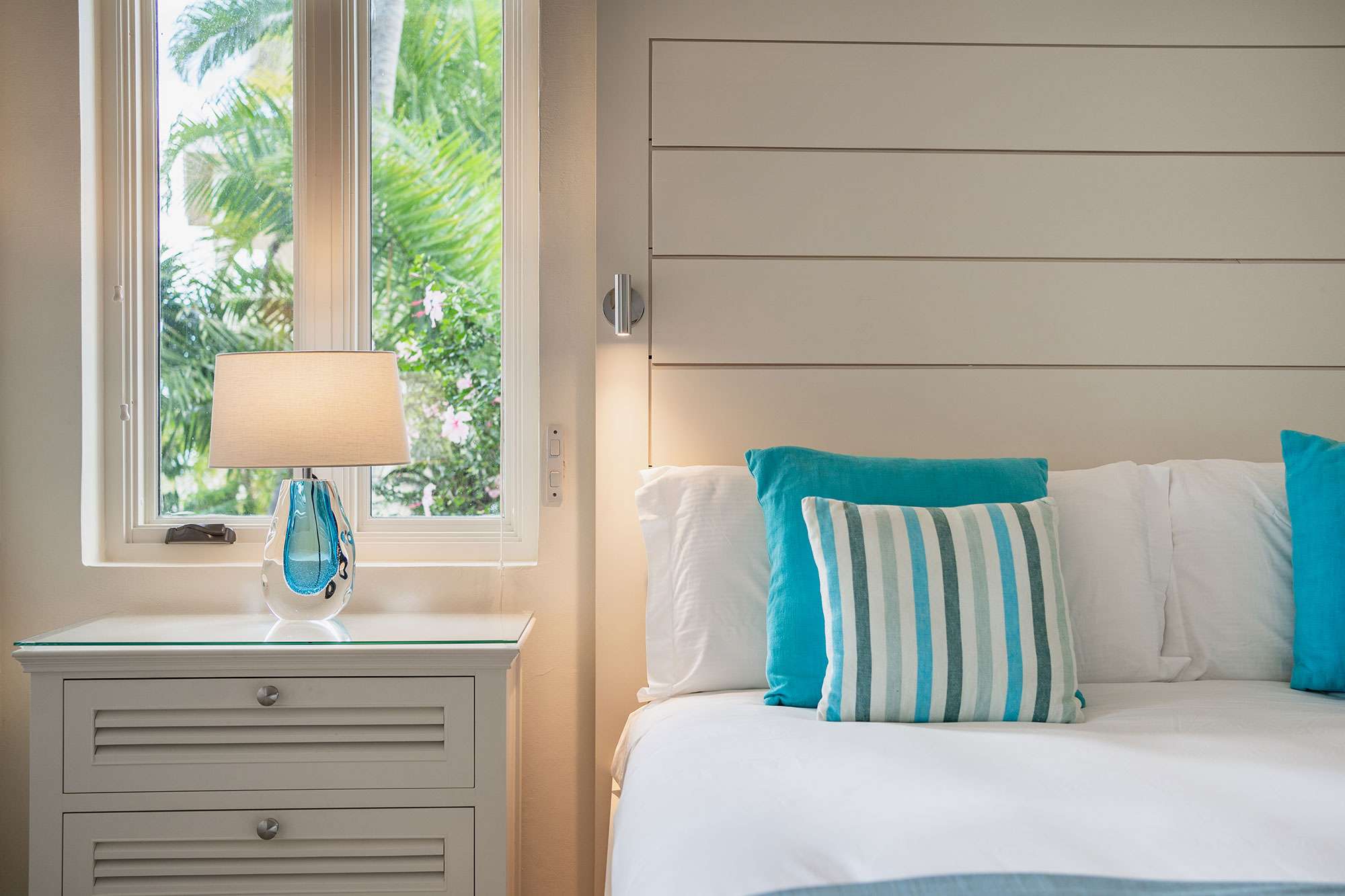 Blue Waters Resort and Spa offers several freshwater swimming pools, bars and lounges, casual al-fresco lunches and evening dining experiences with views of Soldier’s Bay. There are 85 rooms, suites and villas in total, set amongst 17 acres of tropical gardens.