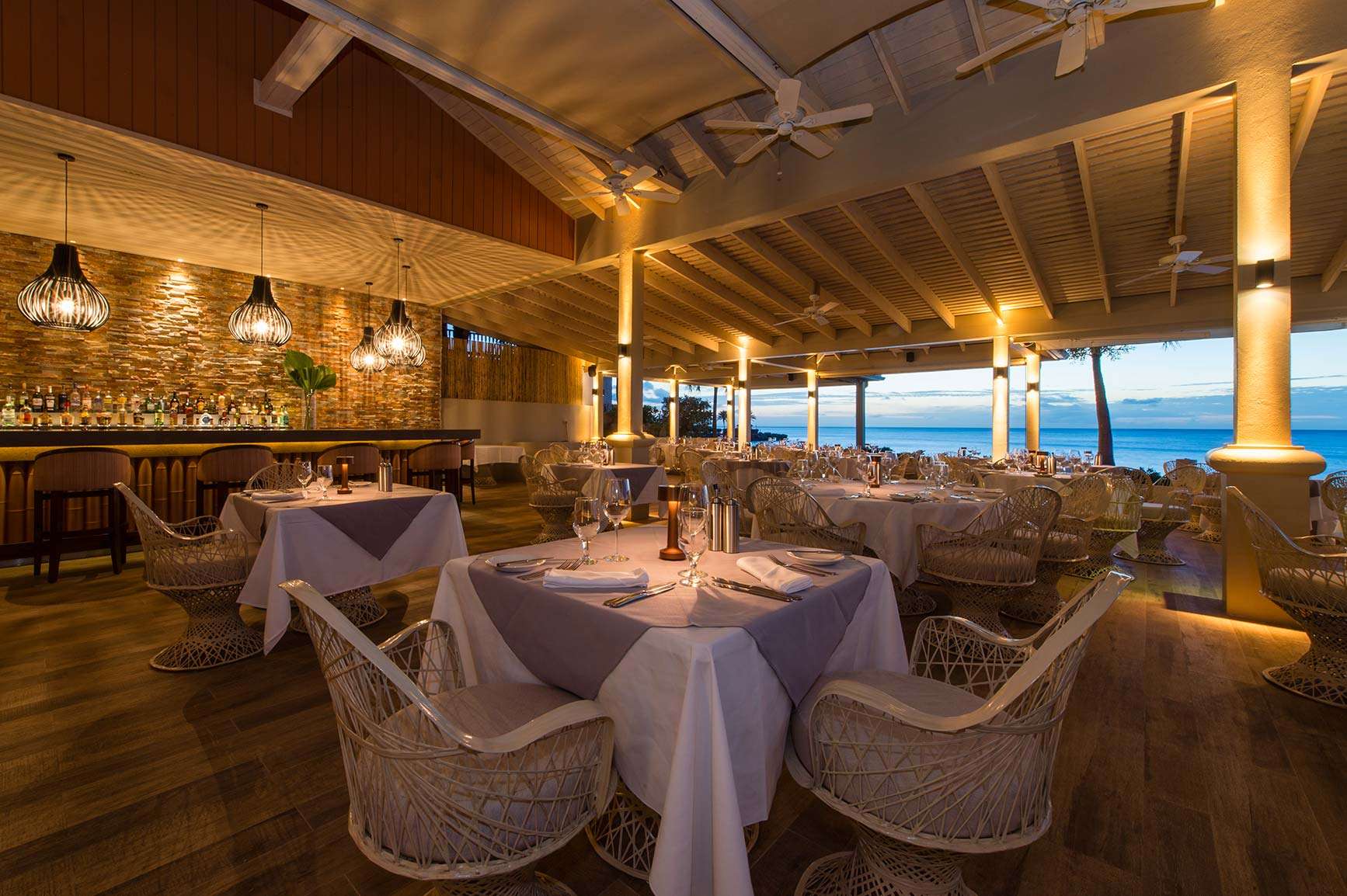 Pelican Bar: An authentic Caribbean bar with views of lush greenery and tropical waters. Enjoy casual drinks during the day and refreshing cocktails in the evening.