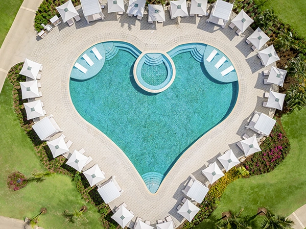 - Lady Palm Club Suite with Media Room and Balcony Tranquillity Soaking Tub: This stunning coastal-style room is the perfect place to find your Zen. Gaze at the sparkling pool while lounging on the open terrace. Enjoy the view of the lush surroundings while unwinding in your Tranquillity Soaking Tub.