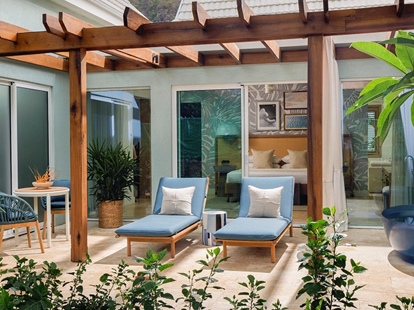 - One-Bedroom Garden Butler Suite with Patio Tranquillity Soaking Tub: With stunning views of tropical gardens, this Butler Suite is the ideal private retreat. This one-bedroom apartment has a private patio with a tranquil soaking tub that’s perfect for relaxing outside, as well as a separate living room.