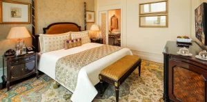 - Royal Parlour Suite: Indulge in refined luxury inspired by Lutyens’ architectural grandeur whilst enjoying sweeping capital views. This suite offers a spacious bedroom with private lounge area, an expansive bathroom which includes a rain shower, and a butler service.