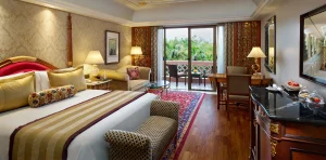 The Deluxe Room is an elegant retreat. It features a king-size bed, a spacious work desk, and a luxurious bathroom with a hot tub. Guests can enjoy modern amenities such as high-speed internet access, a pillow menu, and Tishya by The Leela bath products. The room’s design blends contemporary comfort with traditional Indian aesthetics, creating a serene and inviting atmosphere.
