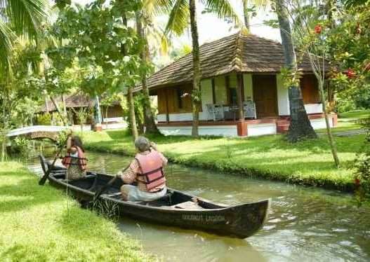 As you step off the boat into a reception area that is built in Kerala style, you will be welcomed with a refreshing coconut drink and live musical recitals. The most striking feature of the Coconut Lagoon is its architectural elegance, the structures of which have been built from old houses. With accommodation spread over a 20-acre estate and nestled amidst majestic swaying palms and stunning surroundings, you can really feel nature taking over. Though built in a traditional style, all the accommodation has ultra-modern amenities. Even the restaurant is housed in a traditional structure with two atrium-like courtyards under a roof supported by pillars.