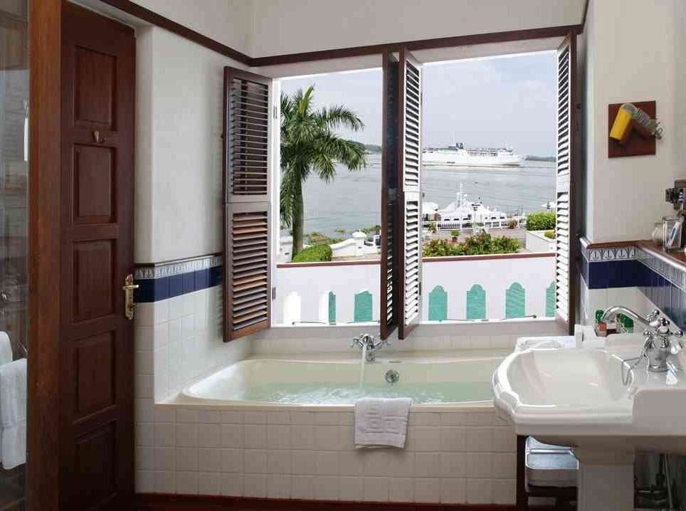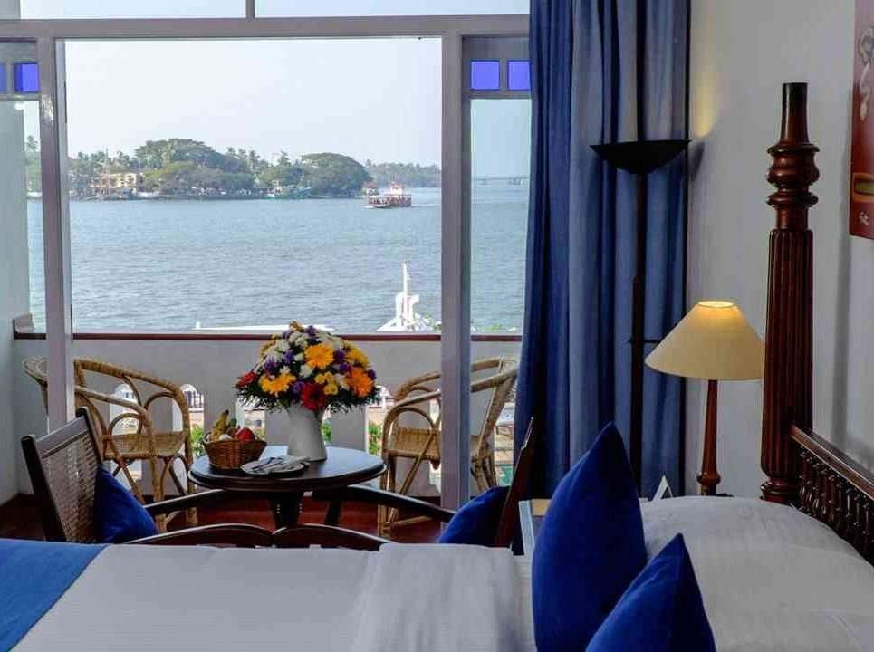 Situated at the harbour mouth overlooking the busy ship channel, all 22 rooms boast a magnificent view of the sea and the many boats and ocean liners that pass by. The period feeling of the resort with its huge halls, high ceilings, and long passageways extends to the rooms which have four poster beds. The ancient royal punkahs (fans) in the reception, old Dutch maps, portraits of Kochi’s illustrious leaders on the walls and an old anchor in the courtyard, all add to the ancient charm. There is a multi-cuisine restaurant and specialty seafood served on a first floor terrace with great views over the harbour and Chinese fishing nets. The Armoury Bar serves excellent mojitos!
