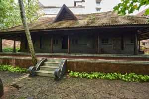 - Erattupetta Cottage: Erattupetta, a 200-year-old cottage that stands magnificently in the middle of lush green surroundings, is brimming with memories and demonstrates respect for traditional architecture and design. Through the veranda that encircles the spacious building, which is sheltered by a pitched roof, earthy hues and warm golden lighting may be seen. The cottage gently honours authenticity while being immediately evocative of its complex history thanks to thoughtful design and its role as a happy medium between the past and present. While the antique windows provide a view of the traditional Keralan house aesthetics, the exquisite and detailed patterns on the walls of the house show the rich culture and heritage of more than two centuries. Enjoy a king sized bedroom and ensuite bathroom with luxurious amenities.