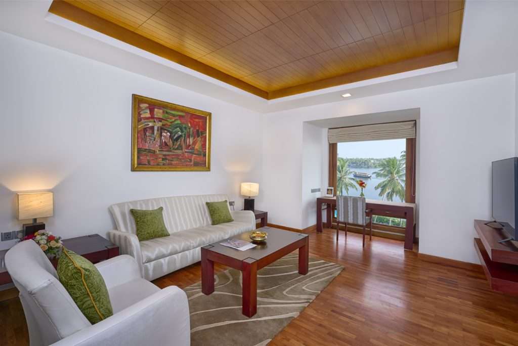 Grand Heritage Suite: Perfect for guests looking for their own piece of history, this elegantly furnished suite maximises its noteworthy architectural narrative with a bedroom offering a picturesque view of Ashtamudi Lake and a large combined living and dining area that extends the view with wooden floors. This roomy 82 square meter suite, with its immaculate charm and breathtaking lake views, provides you with a chic and modern haven in the middle of nature. The large rooms include a king-sized bedroom and a separate work-desk area in the living room. Enjoy luxury with a spacious bathroom including a jacuzzi.