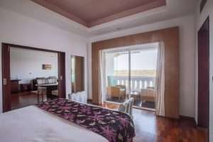 Royal Suite with Panoramic View: Savour the splendour of these contemporary yet sophisticated suites that honour the resort’s stunning natural surroundings. These suites, which are 82 square meters, have modern furnishings with subtly incorporated elements of culture and heritage, guaranteeing your comfort while providing a unique sense of location. Each has a private balcony that adds subtle luxury, a large living space, and a king-sized bed. The expansive bathroom with a deep-soaking bathtub and a view of the lake encourages you to unwind and revitalise in peace. Admire the breathtaking panoramic views of the lake as soon as you step out onto your private balcony. The suite is filled with natural light from the floor-to-ceiling windows, which creates a calm and welcoming atmosphere.