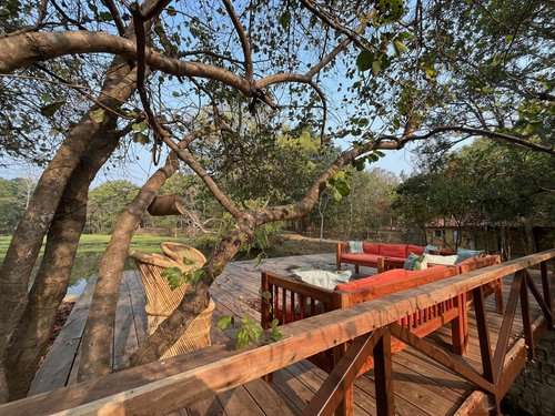 A small gem of a tented camp tucked away in an oasis of wilderness close to Kanha Tiger Reserve. The local husband and English wife team, Jehan & Katie, who own and manage the camp, met when they both worked as naturalists in Kanha. Their combined passion for wildlife, nature and each other, has resulted in this wonderful, laid back camp which they built in 2004. It remains their family home for at least part of the year; including their two young children. They are assisted with the running of the camp by a team of naturalists and local people who endeavour to make your experience truly special and memorable. On our visit we were really impressed with the warm, friendly atmosphere, tranquil setting and comfortable tents. This is a place where stories are told, friends are made and life feels good – we loved it!
