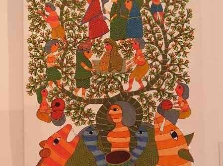 We encountered many examples of art from the Gond tribe. These people believe that we have a connection with the earth and all the animals and plants. Much of their art depicts this with physical connections betwwen humans, trees and animals.Hotels
