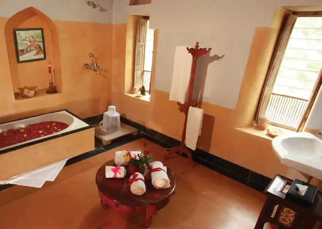 The rooms and dining hall are designed according to traditional Rajasthan architecture which gives the hotel extra charm. The 18 rooms, named after the nearby forests, are all different and furnished with a blend of rich Indian ethnicity and urbane decor. They are comfortable and functional with good bathrooms. Many feature a balcony, terrace or jharokha (overhanging enclosed window seat) with stunning views across the countryside.