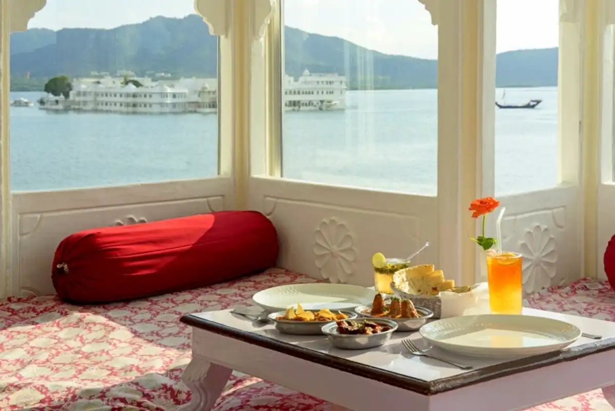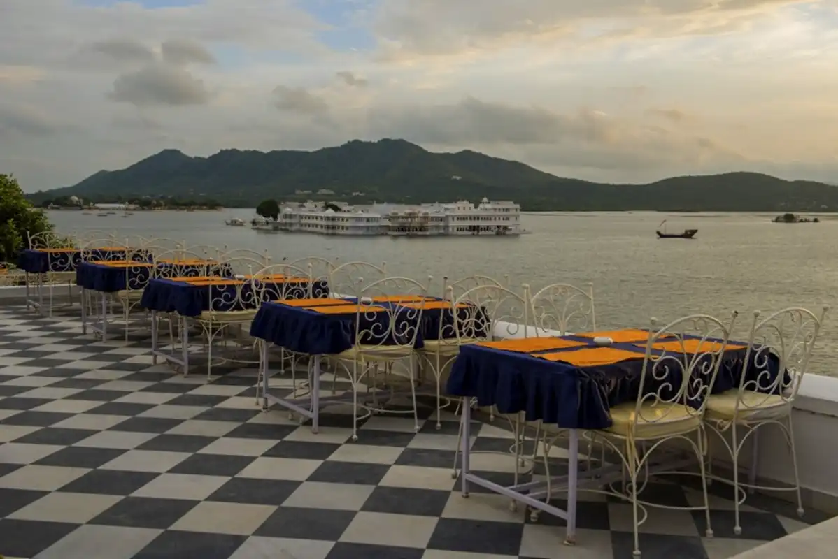 Dining options consist of Chandi, the famed rooftop restaurant and Jharoka Restaurant, both serving Continental, Chinese and traditional Rajasthani cuisine. A good selection of drinks, including alcohol is available and the rooftop terrace is the perfect place for spectacular sunsets. An in-house bakery offers bakery items including breads, pastries, cookies, chocolates, desserts and cakes. Guests can also enjoy a private dinner experience aboard Jagat Sagar boat on Lake Pichola with fresh flowers, candles and accompanied by live traditional music. Evening entertainment provided by the hotel includes traditional puppet shows and live music.
