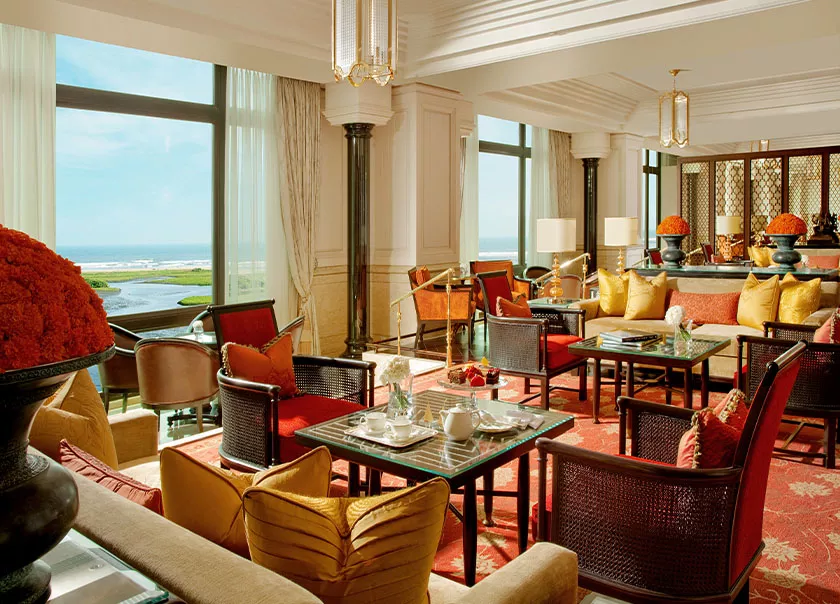 Guests are treated to a curated culinary journey across its award-winning restaurants, including fine Indian cuisine at Jamavar and sophisticated pan-Asian offerings at Spectra. The hotel also boasts a lavish spa, an infinity pool overlooking the ocean, and grand venues for weddings and events.