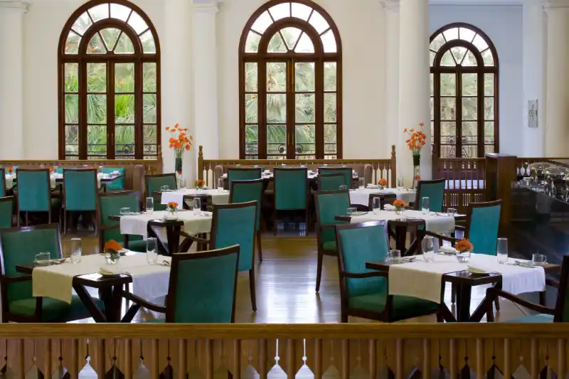 Vivanta by Taj Gomti Nagar is located on the banks of the Gomti River, just 8 km from the railway terminus and a mere 20 km from the airport. The architecture of this structure presents a mix of chic and classic styles with its dome and pillars. Each room features ergonomically designed work desks, internet access, and a television. De-stress options such as a special Rest Easy menu and dual massage showerheads are some of the luxury amenities of the hotel’s accommodation. The restaurants offer a wide selection of multi-cuisines. Sahib Cafe offers Pan-Indian cuisine and Oudhyana provides traditional Awadhi and North Indian cuisine. Saqi is the most happening bar in Lucknow – enjoy delicious cocktails made from the freshest herbs and fruits.