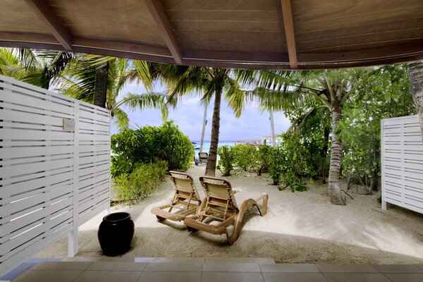 Beach Suite- Located right on the beach with wide open spaces and a king size bed on a mezzanine level. Large bathroom and outdoor shower.