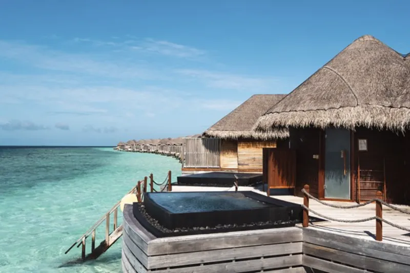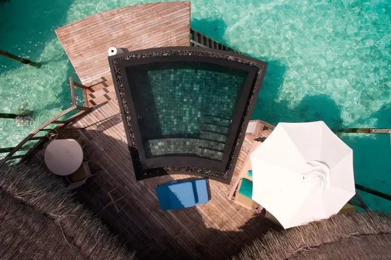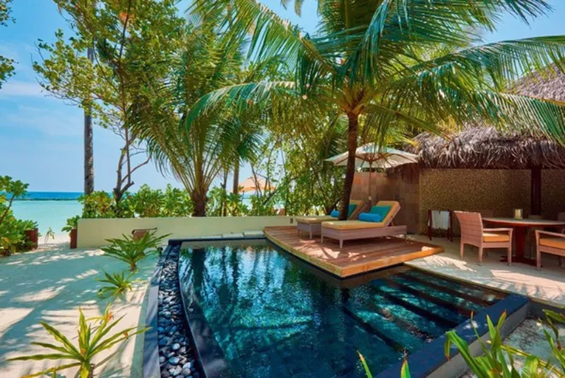 Every villa at the opulent island resort Constance Halaveli has a private pool, breathtaking views, and a balcony where guests may sunbathe or watch the stars. World-class diving, spa services with an ocean view, and a wine vault with more than 22,500 bottles are all available to visitors.