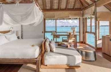 Located on the North Male Atoll the resort is only 20mins by speed boat from the airport. Gili Lankanfushi prides its self on sustainability and making sure they are eco friendly. The eco-resort’s philosophy is ‘no news, no shoes’ and they encourage guests to live sustainably.Known for its rustic over water villas and as one of the first barefoot luxury resorts, the resort offers a wonderfully laid back atmosphere and hosts a range of activities from cooking classes, sunset yoga, sandbank picnics, and private movie screenings. There are special entertainment programmes for kids. The Ocean Paradise Dive Centre is PADI certified while Tropicsurf school allows guests to experience world class surfing.