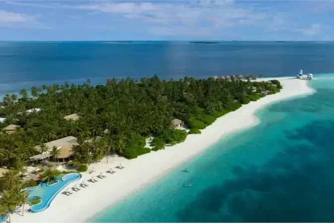 With its ideal position next to the UNESCO Biosphere Reserve, the Intercontinental Maldives provides a peaceful haven that is ideal for discovering a variety of marine life, swimming with manta rays, and seeing dolphins. The island is the first all-club resort, offering visitors special benefits and customised experiences.
