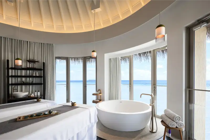 Overwater Villas (22): Showcasing striking views of the Indian Ocean these Overwater villas have the ability to open up onto a voluminous outdoor deck, giving you the ideal sunrise and sunset spot. You will also be able to relax and take in the views from you sun loungers or cool off in the clear blue waters directly below.