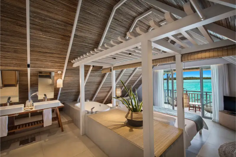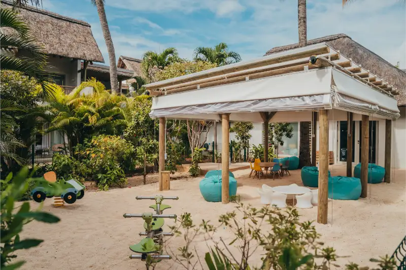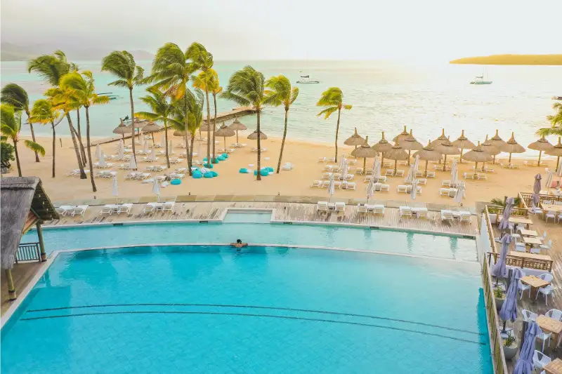 The island style architecture is charming, with thatched buildings and sandy pathways. The cultural heritage of Mauritius can be seen here through experiences and shows. This resort is an authentic and vibrant place, offering many activities but plenty of chance for relaxation with the feel of a private island retreat.