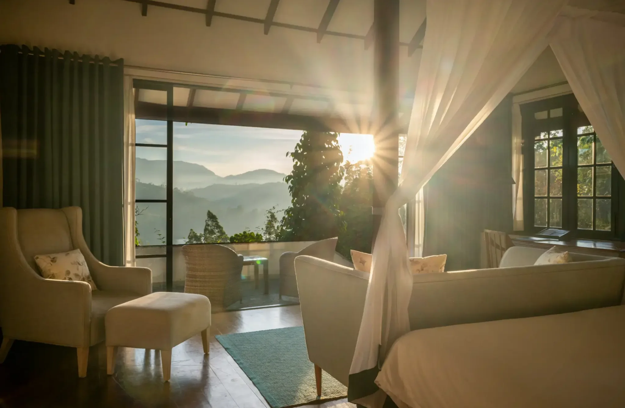Camellia Hills in Dickoya, Sri Lanka, offers five uniquely designed bedrooms, each providing a blend of comfort, luxury, and panoramic views of the surrounding landscapes. These rooms are categorized into two types: Lakeview Rooms and Camellia Rooms.