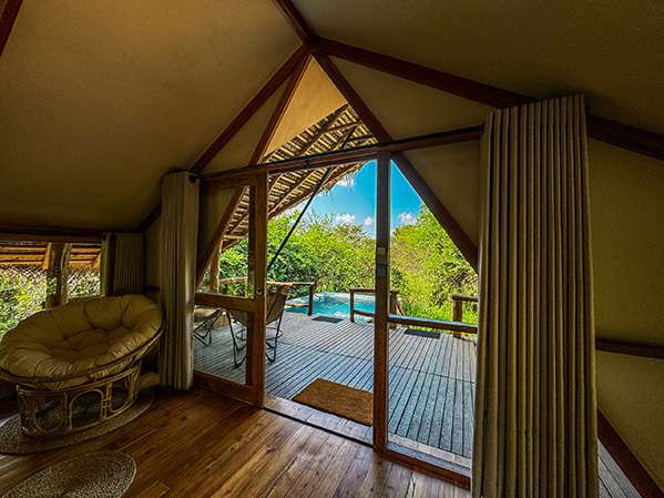 There are 5 luxury chalets altogether at Thamaravila Wilpattu, all built on stilts and spanning 1000 square feet. The chalets are all offered on an ‘all-inclusive with game drive’ basis, making this an intimate and immerse experience.