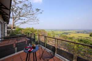 The lodge features around 40 stone or brick bungalows (or villas) arranged along the hillside terraces, each with red terracotta tiled roofs, wooden furnishings, and private balconies or terraces to take in the serene countryside. Rooms typically include modern comforts like minibars, cable TVs, coffee/tea facilities, air conditioning, and private bathrooms with hairdryers and toiletries.