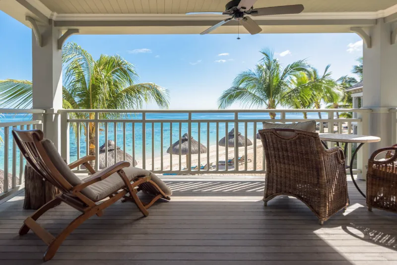 Le Morne Balcony Suite / Le Morne Beach Access Suite – These suites are the biggest rooms in the resort. They include a separate indoor living room and a spacious outdoor terrace. There is ground beach access or balcony.
