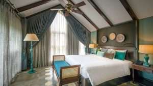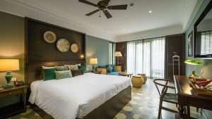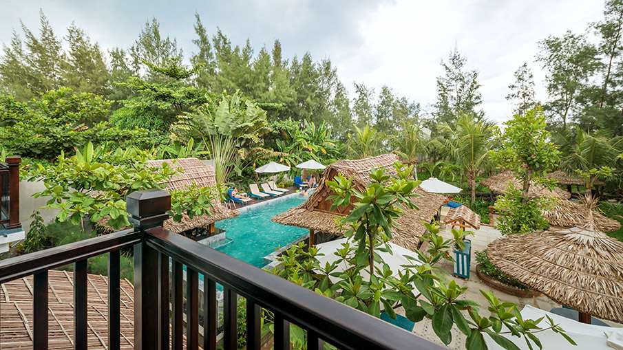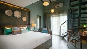 Tucked away in lush gardens and located footsteps from An Bang’s golden sands, Aira Boutique Resort feels like a secret garden retreat infused with French colonial charm and elegance. The 40 rooms and suites are set amidst gentle fountains and shady verandas, with Ficus trees and Bougainvillea trails winding through paved walkways across two stylish buildings. Interiors evoke colonial-chic sophistication: rattan furnishings, soft linen drapes, vaulted ceilings, and open-air balconies that invite gentle and relaxing ocean breezes.