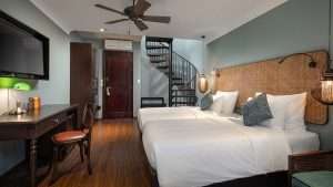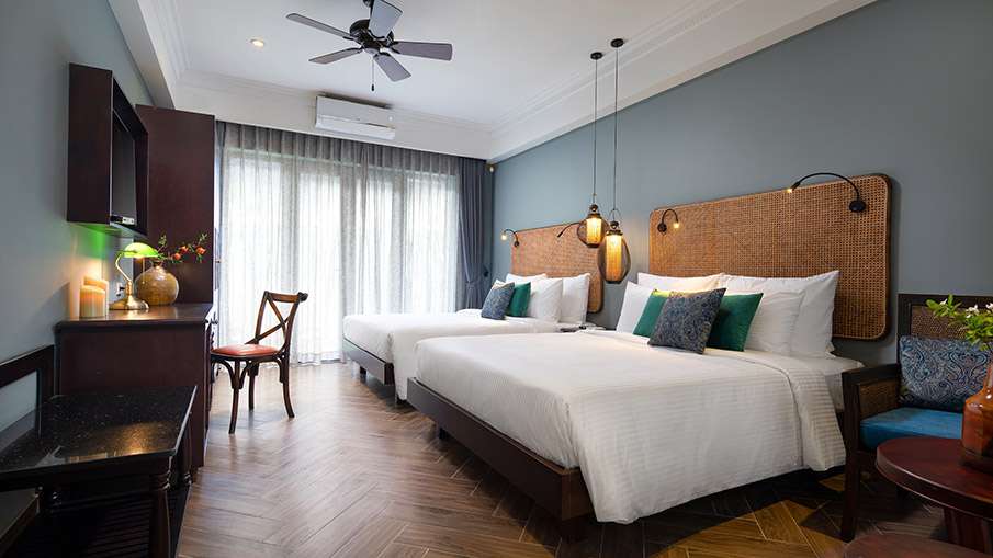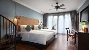 Nestled among lush tropical gardens, each elegant Deluxe Balcony/Terrace Room offers a tranquil sanctuary. Wake up to the gentle sway of palms and enjoy fresh morning air from your private balcony or terrace. Thoughtfully designed with a king or twin beds, warm wood furnishings, and rain‑shower bathroom, it’s the perfect haven for guests seeking peaceful relaxation just steps from the An Bang beachfront.
