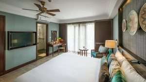 Ideal for couples or solo travellers seeking added space and style, the Premier Deluxe Room combines Indochine chic with tropical charm with your own private balcony or terrace. Floor-to-ceiling windows open onto garden and/or pool views, while plush king bedding invites indulgent and restful evenings. The sleek en‑suite bathroom features a rain‑shower, perfect for refreshing after beach or spa time. A stylish, serene retreat for those craving comfort and elegance.