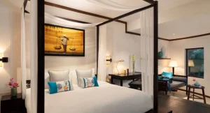 Anantara River View Suite: Offering a four-poster bed, private terrace overlooking the Thu Bon River and comfortable and modern decor, enjoy this signature suite experience. Romantic, refined and elegant for an unforgettable stay.
