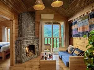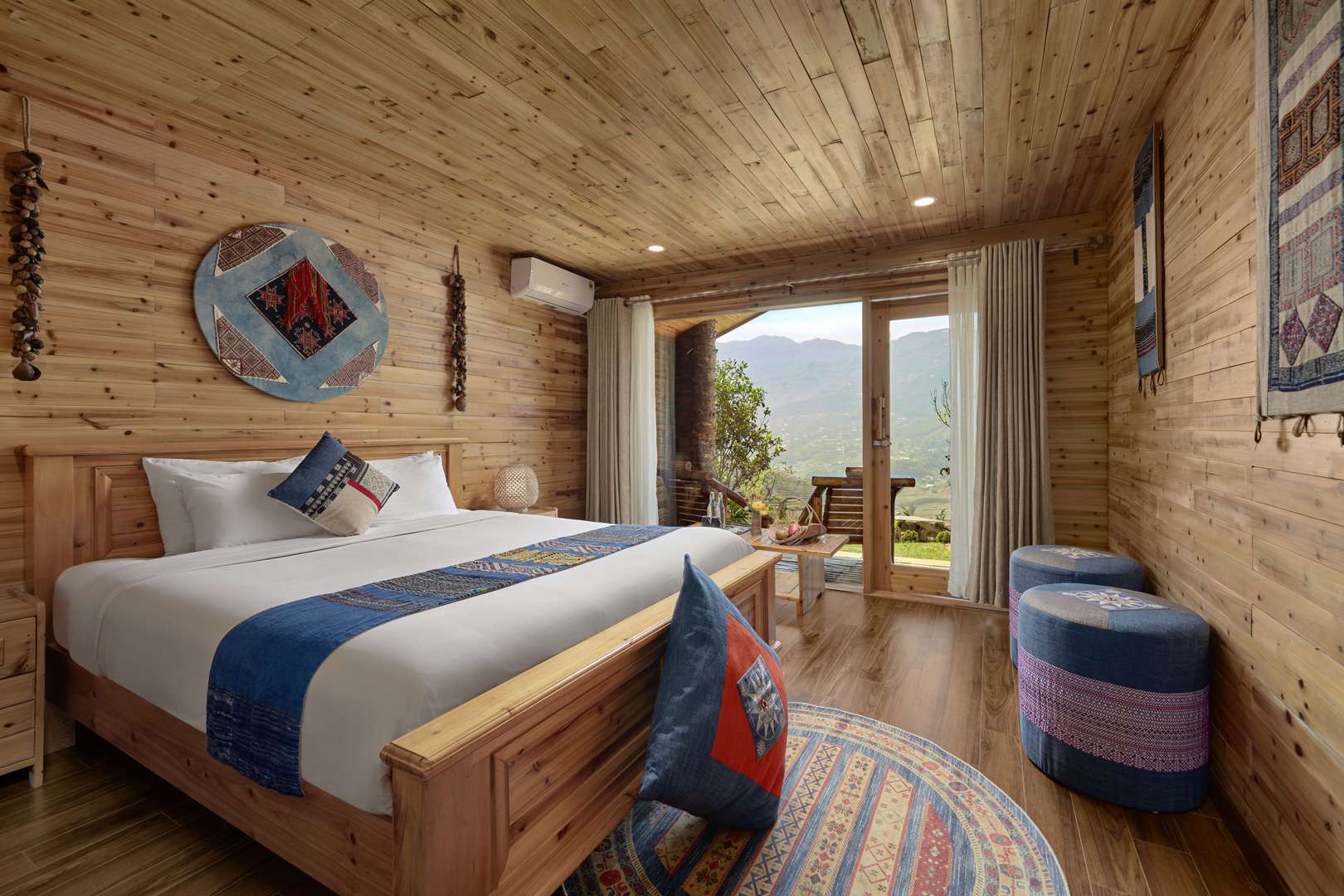 Perched amidst rice terraces and towering mountains in Lao Chai village, this environmentally styled ecolodge blends traditional H’Mông architecture with modern comforts. Offering an authentic and upscale boutique experience featuring private balconies overlooking breathtaking valley and mountain views.