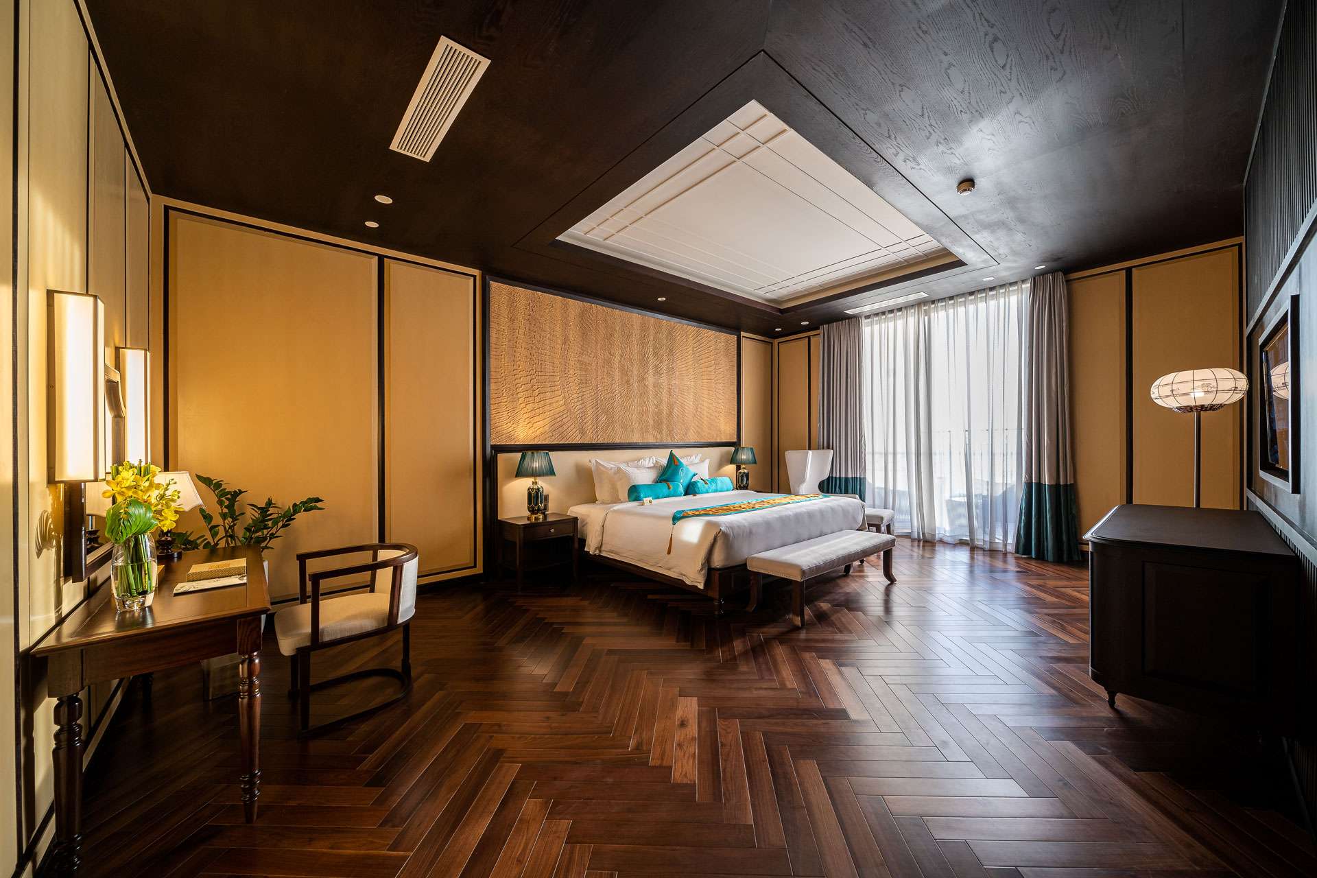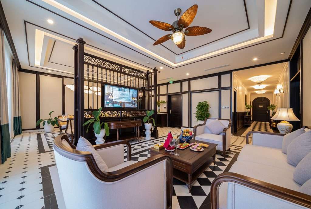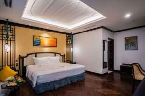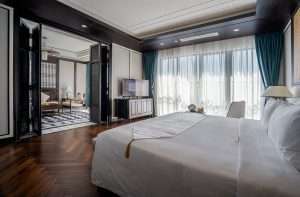 Presidential Suite: The crown jewel of Potique, the Presidential Suite occupies the entire 23rd floor, offering two bedrooms, a living room, dining area, walk-in closet and a private terrace with jacuzzi. Decorated as a 1900s Indochine mansion, it includes deluxe touches like marble floors, refined art and panoramic sea views.