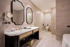 Settle into the warm embrace of French‑Indochine sophistication in the Classic Room. Featuring premium bedding with a plush pillow‑top mattress, smart TV and blackout curtains, this room is a serene urban retreat. A large window frames views of the lush gardens or light-filled skylight. Elegantly tiled en‑suite bathrooms include rainfall showers, robes, slippers and luxury toiletries ideal for unwinding after a day of city exploration.